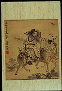 Six-fold screen, color on silk, Each 146.4 x 42.7 cm, Late-Heian Period (11th Century)